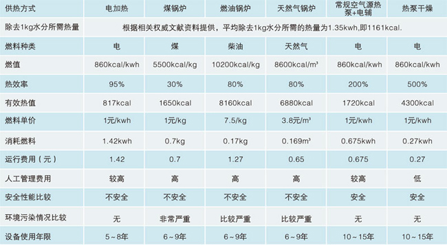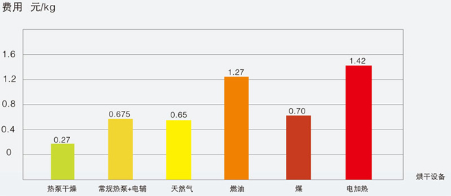 1、節(jié)能高效   熱泵除濕干燥機的運行費用只有燃油干燥機的40%,燃煤干燥機的60%和電熱加熱設(shè)備的30%。